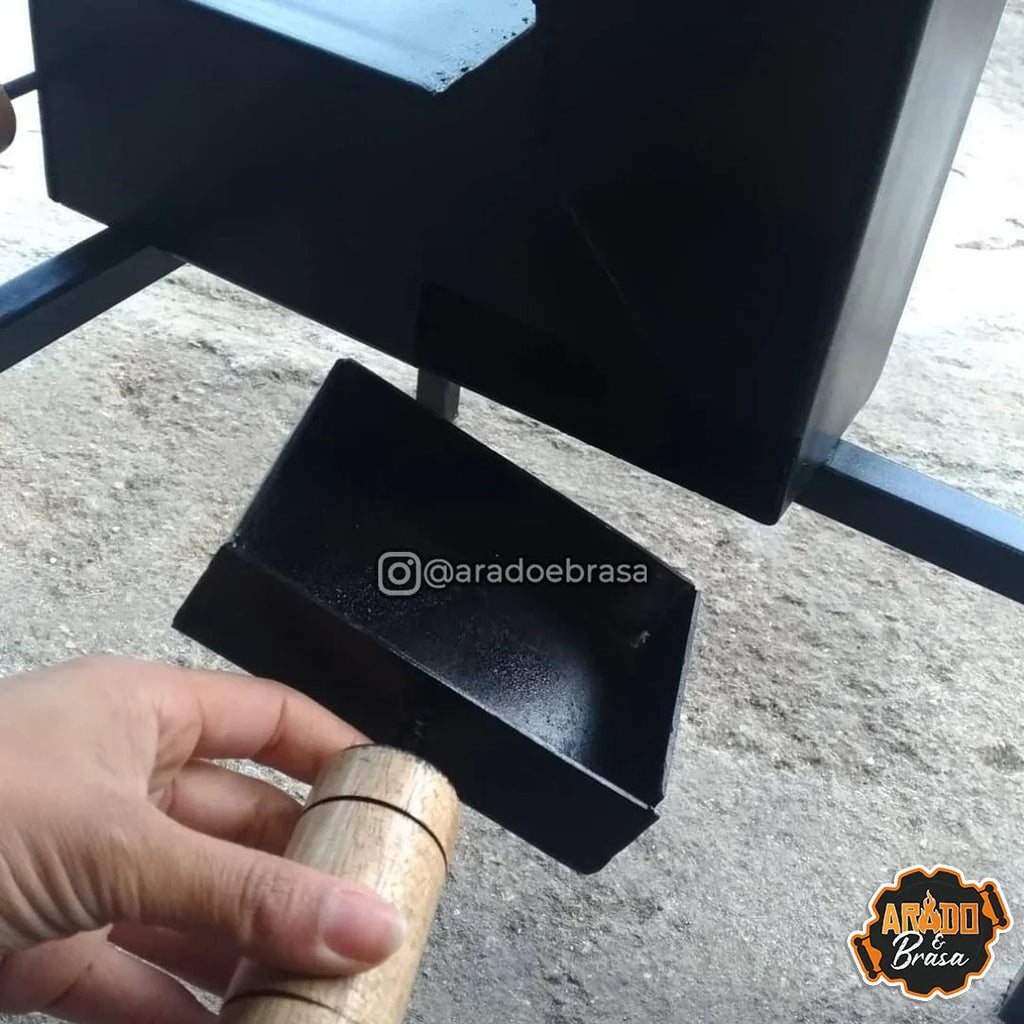 Suporte a Lenha: O suporte foi projetado para oferecer estabilidade e praticidade, permitindo que você cozinhe de forma rústica, preservando o sabor autêntico dos pratos feitos no fogo.